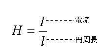 円周長をl、比例定数を1とすれば、磁場Hは電流Iを円周長lで割ったものとして表現できる。