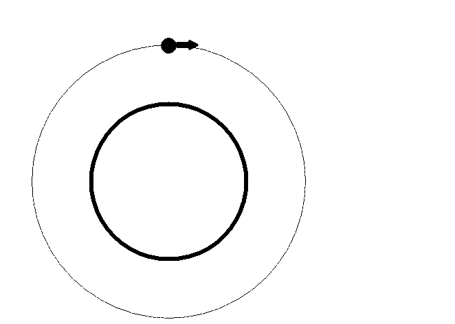 さらにスピードを上げて物体を真横に投げれば、落ちる前に元の位置に戻ってしまう。